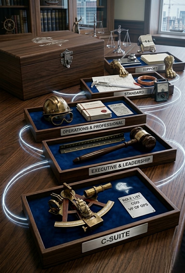 Our service framework is organized around the level of decision-making authority, technical certification, and organizational risk involved in each role.
